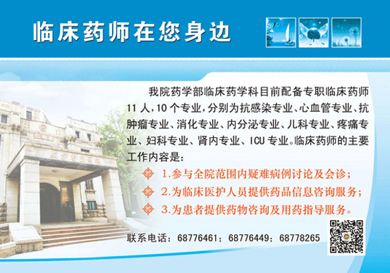注:标注*者为我院正在使用药品品种临床药师联系电话: 6877-6461, 6449,8265 详细>>