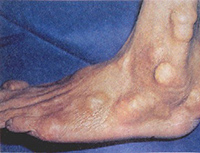 【定义】 痛风是一种尿酸产生过多或排泄不良而致血中尿酸升高,尿酸盐结晶沉积在关节滑膜、滑囊、软骨及其他组织中引起的反复发作性炎性疾病。 【危害】 主要包括急性发作性关节炎、痛风石形成、痛风石性慢性关节炎、尿酸盐肾病和尿酸性尿路结石,重者可出现关节残疾和肾功能不全。 【治疗】 急性发作时可使用非甾体消炎药、激素、秋水仙碱等,纠正高尿酸血症,需长期服用抑制尿酸生成或促尿酸排泄药,手术剔除痛风石,对毁损关节进行矫形手术,可提高生活质量。 【注意事项】 …