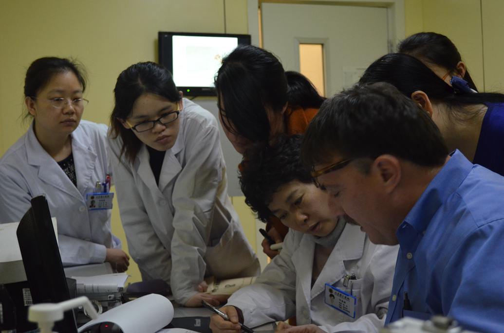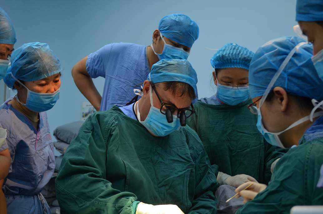 来自美国的Hertle教授在近一周的时间不顾旅途辛苦和时差的困扰,连续进行了3天门诊和3天手术,为69名白化病患儿进行了会诊并对其中38名患儿进行了手术治疗,美国医生对待病人热情亲切、对待工作认真负责的敬业精神使我院医护人员和患儿家属深受感染。Hertle教授还在百忙之中对我院眼科医生以及前来参观学习的外地眼科医生进行了专题讲座,并耐心讲解大家提出的问题。Hertle教授对我院医护人员的就诊流程、手术配合等工作给予了高度评价,特别高兴的提出与我院医护人员合影留念。