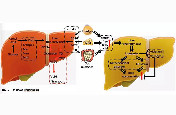 脂代谢异常是代谢病领域的重要病因。脂代谢紊乱造成机体各器官的脂质沉积,影响器官功能,进而引起糖脂异常,胰岛素抵抗,甲状腺、性腺功能紊乱,动脉粥样硬化等代谢性疾病。其中,肝脏作为脂肪合成、分解、氧化、转运的重要器官,对其脂代谢机制的研究能够有助于提供临床治疗的理论基础以及新型药物靶点的开发。针对肝脏脂质代谢紊乱,虽然国内外取得了瞩目成绩,但目前临床依然缺乏有效的药物治疗,其根本原因之一是对肝脏维持脂质代谢稳态核心机制不清,有效干预肝脏脂质代谢紊乱的靶点不清,这也是该领域重要科学研究难题之一。深入探究肝脏脂质代谢稳态机制,发现有效干预靶点,纠正脂代谢紊乱,是降低肝脏脂代谢紊乱患病率的重要研究内容,具有极高的科学价值。