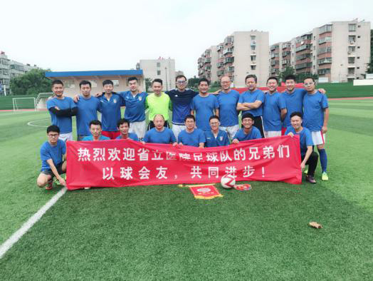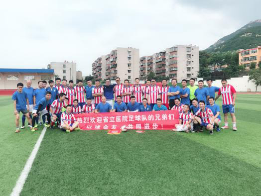 近年来,在级院领导以及工会的大力支持组织下,我院各项文体活动蓬勃开展。其中足球协会组织的足球队,技术精湛作风优良,多次在与兄弟单位的比赛中斩获佳绩,为医院赢得了荣誉。 2017年8月13日,受泰山医学院工会以及泰山医学院附属医院足球协会的邀请,山东省立医院足球队一行20余人由会长梁皓主任带队,驱车前往泰安与泰医附院足球队进行了一场足球友谊比赛。