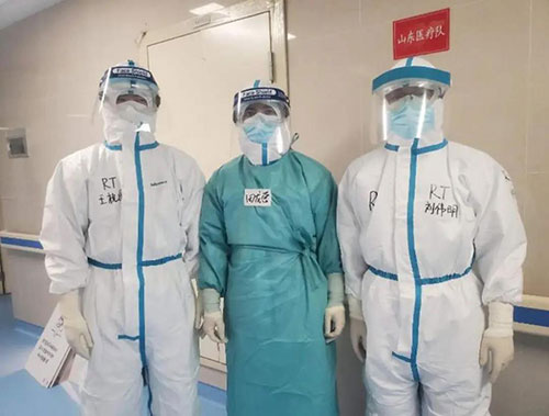 呼吸治疗师是一种新兴的医学职业,工作是在医生指导下,对心肺功能不全或异常者给予诊断、治疗和护理。如今,山东省共有近100名呼吸治疗师,分布在各个医院的重症医学科、呼吸科、急诊等一线科室。疫情发生后,呼吸治疗师们在不同的岗位发挥着重要的作用,第一批山东支援湖北医疗队中就有三位来自不同医院的呼吸治疗师奋战在一线:伟德1949官方网站重症医学科的刘伟明、山东省济宁市第一人民医院重症医学科王祝国、山东省聊城市人民医院重症医学科田龙营。他们从第一天进重症病房工作到现在,已经在湖北黄冈大别山区域医疗中心奋战了40多天。