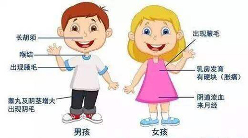 男孩具体表现为睾丸容积增大,阴茎增长、增粗,胡须、阴毛、腋毛出现,变声,遗精等改变,同时伴有身高、体重的快速增加。