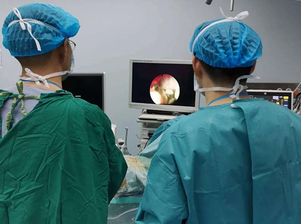 患者入院后完善检查,陈修德主任医师选择右肾中盏穿刺,建立F24标准通道,一期、单通道顺利清除全部结石。