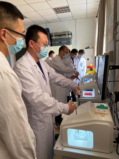 基地负责人王栋副主任医师介绍说,肺癌是我国发病率第一、死亡率第一的恶性肿瘤,严重威胁人民健康,传统的开胸手术创伤大,恢复慢,手术后生活质量差,极大地增加了社会和医疗负担。胸腔镜微创手术自实施以来,极大地减轻了患者手术痛苦,缩短了住院时间,改善了手术后的生活质量。但是由于胸腔镜手术有较高的技术门槛,单纯的理论授课难以达到学习目标。