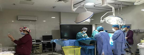 由于情况危急,为争取抢救时间,李磊副主任医师紧急制定手术预案,决定采取先实施局麻剖宫产手术,待胎儿娩出再实施麻醉的方案,麻醉科副主任医师付红娟、孙越、李思远等立即到位准备实施麻醉。助产士王晓丽、任士静、孙宝丽和李术娟各司其职,准备产妇及新生儿抢救。孙晓梅医师紧急联系新生儿科刘兆娥医师来产房手术室会诊。台上台下全体医务人员齐心合力,争分夺秒,在产房手术室上演了一场生死时速的大营救。