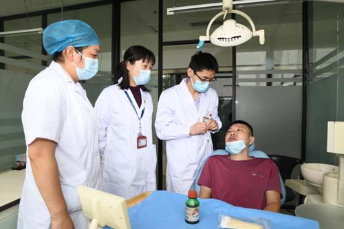 6月2日上午10时,支部党员们首先来到宁津县人民医院口腔科门诊,不顾舟车劳顿,立即展开了义诊活动。专家们耐心细致地为每位患者分析病情,并给予了相应的治疗操作,同时提供了科学合理的诊疗建议和健康宣教。张东升教授针对今年国家口腔医疗质量控制重点项目橡皮障的使用对医务人员进行了培训。