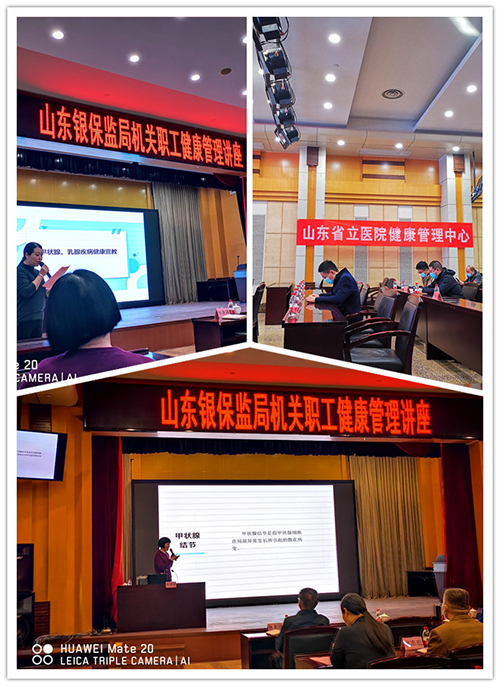 12月31日,伟德1949官方网站(山东省立医院)健康管理中心李茵茵主任医师、张伟英主治医师、汪莉娟护士应邀走进山东银保监局开展健康讲座及宣教活动,近50名银保监局机关职工参与此次活动。
