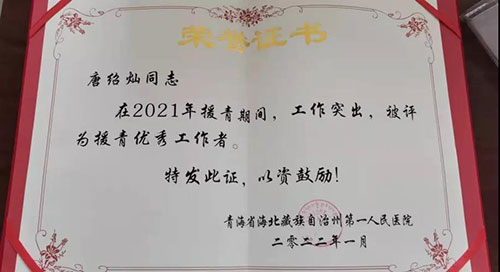 在山东援青干部管理组领导下,在省立医院强有力的支持保障下,唐绍灿克服高海拔、恶劣气候等不利条件,不忘初心、奋勇争先,积极有效开展医疗援青工作,在改善医疗服务、参与医院管理、临床带教、人才技术帮扶等方面,取得丰硕成果。