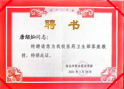 在山东援青干部管理组的关心和领导下,唐绍灿带领山东援青医疗专家在海北州职业技术学校、海北州第一人民医院开展了“医教协同”试点工作,搭建州医院与州职校“医教协同”平台,并受聘担任海北州职业技术学校客座教授。通过制定专题讲座、临床实践见习指导、教学互动研讨活动计划,推动医教帮扶活动走深走实,助力职校提升办学水平、深化育人模式改革,强化专业建设和师资队伍建设,提高教育教学质量。截止目前,唐绍灿根据海北州职业技术学校需求,为康复技术专业学生开展理论授课26学时,康复技能培训活动3次,见习带教18学时,见习学生96人次。