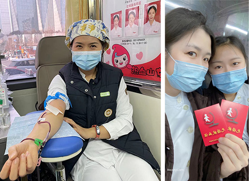 1月25日,医院2022年无偿献血活动期间,东院手足外科一病区医护人员踊跃报名参加,赵潇艺、张晨、孙钦敏、赵雁等参加献血活动。