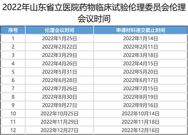 2022年山东省立医院药物临床试验伦理会议时间计划表