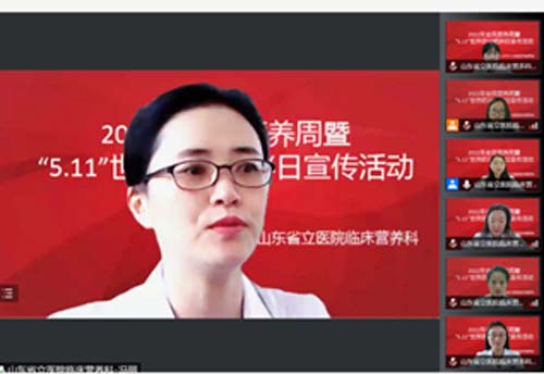 今年5月份是营养界的科普月,5月11日是世界卫生组织确定的世界防治肥胖日,5月15-21日是中国营养学会第8届“全民营养周”,5月20日是第33届中国学生营养日。在中国营养保健食品协会、山东省医学会、山东省医师协会及山东营养学会的大力支持下, 省立医院临床营养科团队全力投入做好线上患教义诊活动。