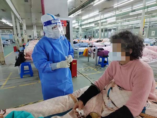 进入石龙路方舱医院工作后,伊洪莉身上的担子更重了,她既是六组的组长也是医疗队护理部的副主任,承担了护理及管理的双重责任。作为多年的护士长,伊洪莉深知患者的病情可能随时变化,她入舱第一时间查看抢救车布置,落实抢救物品、药物的种类及配置,为患者的安全树立了坚实的屏障。