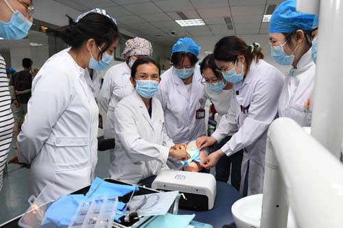 医院召开三次碰头会,对中心院区口腔门诊及东院区口腔门诊相关医生进行了细致的调研,制定详细的培训及考核办法。口腔内科尹新芹主任医师主讲进行了一次理论培训,王更如主治医师进行了橡皮障的基础知识培训。6月中旬,口腔医院举办了两次实操培训,中心院区及东院区90余名医护人员参加培训,完成实操考核。