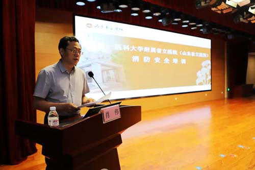 孙建军采用专业理论知识和典型实际案例相结合的方式,生动形象地讲解了日常消防管理工作中的注意事项及医院相关的消防职责及法律依据,特别对医院防火要点和加强火灾防范、提升应急处置能力等方面进行了重点讲解。