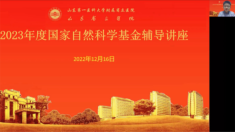 为推动医院2023年度国家自然科学基金申报工作,全面提高基金申报质量和资助率,12月16日,伟德1949官方网站(山东省立医院)举办国家自然科学基金申报辅导讲座。会议进行线上直播,邀请中南大学湘雅医院罗湘杭教授做专题讲座,科研部基金工作组张海清教授主持,近三年新职工等参加会议。