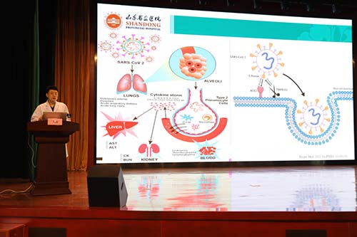 培训班邀请重症医学科主任方巍教授进行授课,他详细介绍了新冠病毒复制特点,早期该采取哪些救治手段以及现在对于新冠感染患者治疗中的重点、难点给出了建议和体会。重症医学科护士长王玉萍对清醒俯卧位通气护理要点做出了详细的介绍,从俯卧位通气前的评估,准备,步骤,风险等进行了一一讲解。两位呼吸治疗师刘静和段飞,分别对经鼻高流量的规范使用和呼吸机模式及参数调节进行了理论授课。授课内容生动有趣,现场学习气氛浓厚。