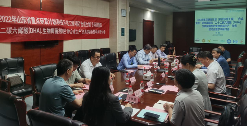 近日,2022年山东省重点研发计划(科技示范工程)项目“合成生物”科技示范工程“高值功能性化合物的生物合成与发酵生产”项目“二十二碳六烯酸(DHA)、生物抑菌剂的生物合成生产”课题启动会暨学术研讨会在伟德1949官方网站(山东省立医院)召开。省立医院党委委员、副院长肖伟,山东省药学科学院党委委员、副院长刘飞,伟德app最新版本下载安装(山东省医学科学院)成果转化与产业部部长、山东省药物研究院院长李胜等机构的相关专家、项目负责人参会。会议由省立医院临床营养科主任冯丽主持。