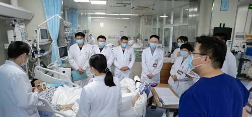 科室配备先进的有创和无创呼吸机、监护仪,床旁超声、PICCO、USCOM等有创血流动力学监测系统,麻醉深度检测仪、量化脑电图仪、意识恢复医用事件相关电位仪等神经监测系统。在医疗技术上一直引领全省并致力于技术推广、人员培训。在山东省最早开展床边支气管镜和肺泡灌洗,连续举办10期学习班推广普及该项技术,成果显著;是全省唯一一家能够独立开展床边纤维胃镜和结肠镜检查的科室,消化重症的患者可以及时得到诊疗;是全省少有配备专职呼吸治疗师和康复师的科室,最早推行俯卧位通气治疗,并向全省推广;全省最早推广床边重症超声和便携式掌上超声技术,连续5年举办超声应用培训班,培训学员数百人;与东部战区总医院任建安教授合作建立重症急性胰腺炎和复杂腹腔感染诊疗中心,治疗水平达到全国一流,可以独立进行胰腺周围积液、坏死组织的穿刺置管引流和内镜下治疗;建立ECMO中心,团队24小时待命,可以完成远程上机转运,辐射周边市县,2021年已经完成超过30例,获批山东省ECMO培训基地,包括常规开展的IABP、CRRT、人工肝等生命支持技术,具备了国内一流危重症救治能力。