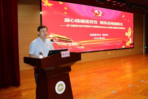 姜民杰从“深刻把握习近平新时代中国特色社会主义思想的世界观和方法论”、“全面领会习近平新时代中国特色社会主义思想的精髓要义”、“自觉推动学习贯彻习近平新时代中国特色社会主义思想走深走实”三方面,强调要通过主题教育激发党员干部凝心聚力促发展、驰而不息抓落实,立足岗位做贡献。要将“学思想、强党性、重实践、建新功”的总要求贯穿主题教育全过程,夯实对党忠诚、为党分忧、为国尽责、为民奉献,勇于担苦、担难、担重、担险,切实把习近平新时代中国特色社会主义思想贯彻落实到为群众健康服务的实际工作中去,在新征程上突出实践实干实效,奏响新时代的奋斗凯歌。