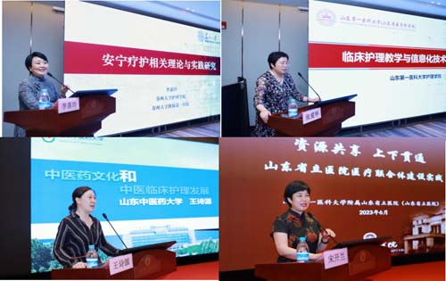 会上,省立医院对外合作与医务社会工作处处长宋开兰、山东中医药大学护理学院院长王诗源、苏州大学护理学院院长李惠玲、伟德app最新版本下载安装护理学院院长张爱华、杨丽娟、孔冬、潍坊医学院护理学院院长孟庆慧、山东省立第三医院护理部主任马月珍、山东医学高等专科学校护理专业带头人护理系教工党支部书记刘云、济南护理职业学院护理系主任侯玉华分别以《资源共享,上下贯通——省立医院医联体建设实践》《中医药文化与中医临床护理发展》《安宁疗护相关理论与实践》《临床护理教学与信息化技术的融合》《国内外专科护士的发展现状及展望》《基于信息化管理平台的护理临床教学评价体系的探索与实践》《互联网+护理服务实践与规范化建设》《基于“固本培元”的基础护理学课程思政教学改革与实践》《“课程思政”的政策背景》《院校融合的临床护理实践教学探索》为题进行学术分享。