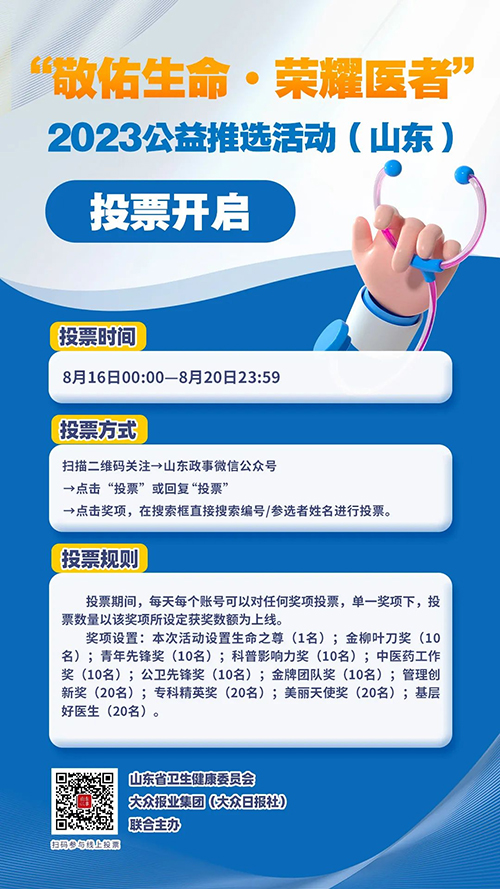 “敬佑生命•荣耀医者”公益推选活动(山东)投票开启!为省医参选者打call吧!