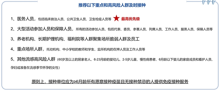 《中国流感疫苗预防接种技术指南(2022-2023)》推荐将以下人群列为建议优先接种人群。