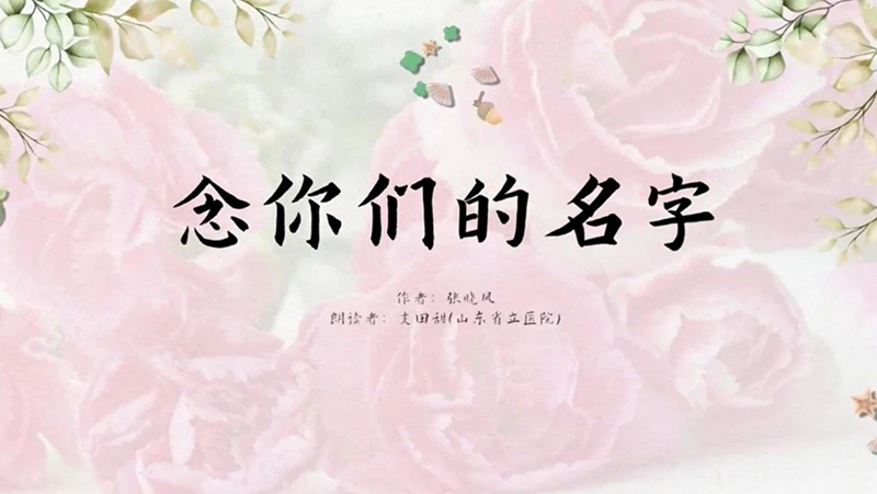 近日,省医新媒体原创作品大赛暨2023年“劳动我最美”短视频互动活动圆满结束。我们将陆续挑选优秀的参赛作品在“劳动我最美”专栏进行展示。今天推出文艺类获奖作品朗诵《念你们的名字》。