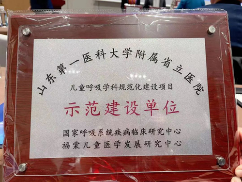 本次会议公布了“儿童呼吸学科规范化建设项目”考评结果。伟德1949官方网站(山东省立医院)小儿呼吸科获国家卫生健康委能力建设和继续教育中心、国家呼吸系统疾病临床研究中心、福棠儿童医学发展研究中心颁发的儿童呼吸学科规范化建设项目“示范建设单位”荣誉称号。全国仅12家医院获此殊荣。省立医院小儿呼吸科陈星主任参加儿童呼吸专科能力建设工作会并上台领受牌匾。