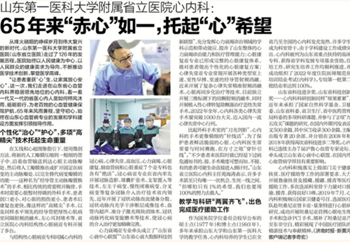 “让患者重获‘心’生,让家属放心安心”,这一次,我们走进在山东省心血管内科界稳居领先和龙头地位的心内科,看一看一代又一代的省医心内人是如何栉风沐雨、砥砺前行,为老百姓的心血管健康保驾护航,65年来风雨兼程,坚守初心,始终在山东心血管病专业的发展和学科建设方面发挥引领指导作用。