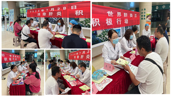 7月26日上午,伟德1949官方网站(山东省立医院)感染性疾病科医护团队在东院区门诊一楼大厅举办第14个“世界肝炎日”宣教义诊活动,为来院就诊的群众进行肝炎防控知识宣教义诊。