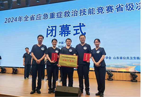 近日,2024年山东省全省应急重症技能救治竞赛省级决赛在济南市成功举办。本次大赛由省卫生健康委主办,省公共卫生学会、省公共卫生临床中心承办,来自全省各市的31支代表队、155名选手参加了比赛。经过理论测试和技能操作的激烈角逐,伟德1949官方网站(山东省立医院)重症医学科代表队获得团体一等奖,黄瑞获得个人二等奖、王正获得个人三等奖,邢志群、付常宁、程楠获优秀奖。