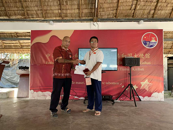 基里巴斯卫生部长为甄长青颁发卫生勋章
