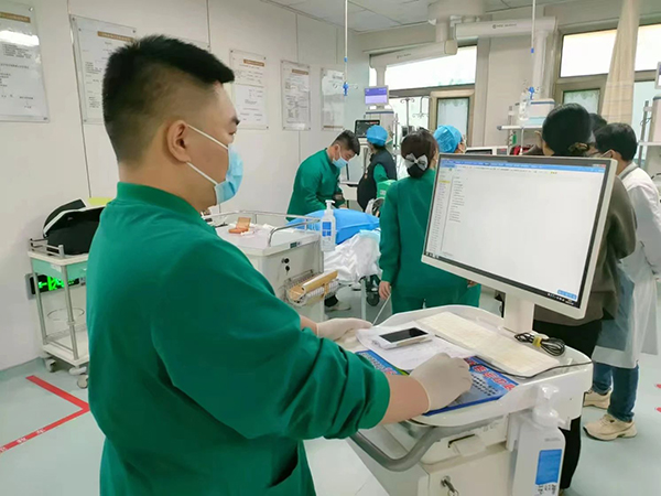 1月28日上午11点多,中心院区急诊内科医护人员紧张而有序地忙碌着,在急诊各区域快速穿梭。医护人员时刻密切关注着患者的生命体征,迅速而熟练地开展抢救工作。