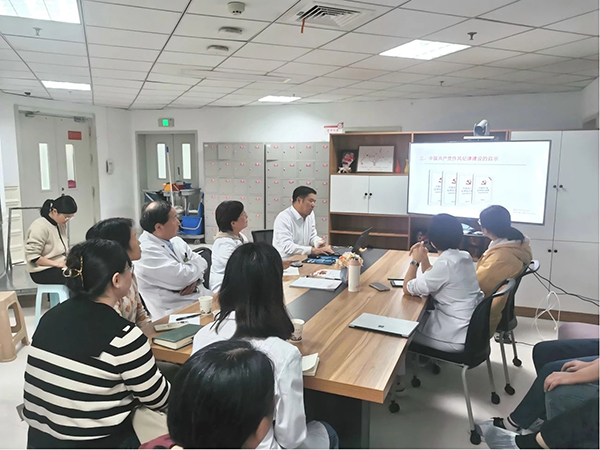 张峰书记以“中国共产党人的纪律作风教育”为题,以党的发展进程及党的自我革命历程为主线,讲解党的铁律“纪严于法”和党史中党风廉政建设大事,结合近年来医疗卫生系统的典型案例,深入浅出地分析了当前党风廉政建设和反腐败斗争的形势,深度解析“全面从严治党”的精神,深刻剖析腐败问题产生的根源,并就如何加强科室党风廉政建设、筑牢拒腐防变思想防线提出了具体的意见和建议。