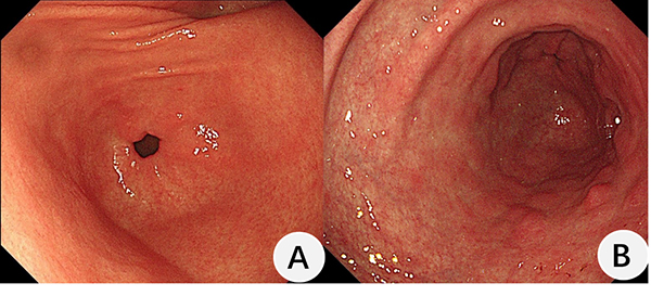 萎缩性胃炎和非萎缩性胃炎是胃炎的两种不同阶段。慢性非萎缩性胃炎也称为慢性浅表性胃炎,是慢性胃炎中症状和病情较轻的一种。它主要表现为胃黏膜炎症,但胃腺体没有出现萎缩(图A)。事实上,健康成年人的胃内也会有炎症存在,因此慢性非萎缩性胃炎是胃镜报告中最常见的诊断,大多数患者没有任何症状,如果胃镜报告上仅显示了慢性非萎缩性胃炎且没有任何症状,是不需要处理的。若慢性非萎缩性胃炎基础上合并了幽门螺杆菌感染、胆汁反流等因素时,可表现为上腹痛、上腹胀、早饱、嗳气、反酸、烧灼感和恶心等症状。此外,吸烟酗酒等不良嗜好、长期口服阿司匹林等非甾体类抗炎药、不良饮食习惯(隔夜食物、太冷太热)等也会引起上述不适症状。慢性非萎缩性胃炎出现上述症状时需前往消化科就诊,去除非萎缩性胃炎病因(幽门螺杆菌感染、胆汁反流等),对无症状、胃黏膜无糜烂、幽门螺杆菌阴性的患者,无需特殊治疗,调整饮食和生活方式即可。