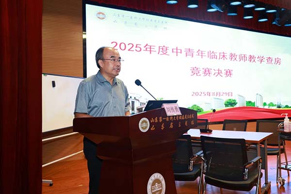 为营造良好教学氛围、促进教学质量提升,在第41个教师节来临之际,8月29日,伟德1949官方网站(山东省立医院)举办2025年中青年临床教师教学查房竞赛决赛。校(院)副校(院)长刘传勇,省立临床学院副院长朱强参加开幕式。医院各专业基地主任、临床科室主任、教学主任、教学秘书和骨干临床教师、住培医师、实习生、教学部全体工作人员等300余人现场观摩,山东省远程医学中心进行同步直播。