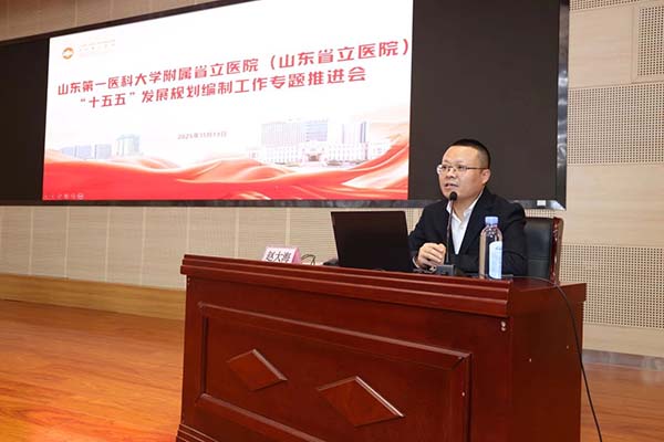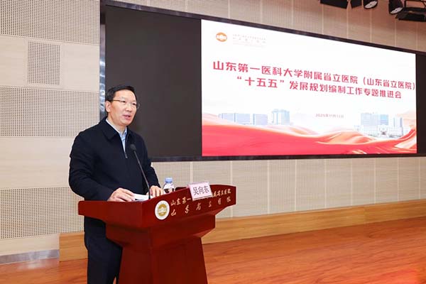 吴向东书记在总结讲话中指出,“十五五”时期,是我国迈向第二个百年奋斗目标新征程的重要五年,“十五五”规划关系到医院建设“国际知名的研究型现代化强院”的远景目标是否能变成现实,意义重大。“十五五”发展规划编制工作启动以来,我们成立了“十五五”发展规划编制工作领导小组及办公室,广泛征求社会各界意见建议,医院领导班子成员分头开展“十五五”专题调研,规划编制工作进展良好。下一步,我们要充分认识“十五五”发展规划的重要意义,切实把规划编制工作作为当前和今后一段时间的重中之重,深入调查研究,认真谋划部署,把规划编制任务完成好。要深入学习贯彻党的二十届四中全会精神,紧扣“健康中国”“健康山东”建设,科学把握“十五五”发展规划的编制方法,高位谋划、精准谋划、系统谋划,主动将医院发展融入国家战略和全省发展大局,在保障人民健康、推动医学科技进步、服务经济社会发展等方面彰显省医担当。