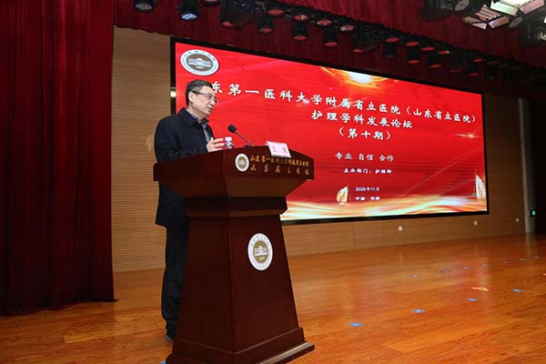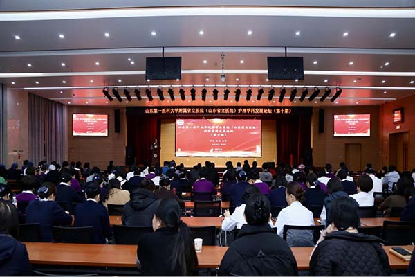 11月12日,伟德1949官方网站(山东省立医院)第十期护理学科发展论坛在中心院区妇儿综合楼六楼学术报告厅举行,奥体院区诚和楼四楼学术报告厅同步远程参会。医院首席专家王荣教授参加论坛并致辞,护理部主任杨丽娟主持论坛。中华护理学会外科护理专业委员会主任委员汪晖、中华护理学会急诊专委会主任委员甘秀妮应邀作专题报告。护理部副主任孔冬、两院区科护士长、护士长、护士代表、进修护士及省立医院护理专科联盟代表500余人参加。