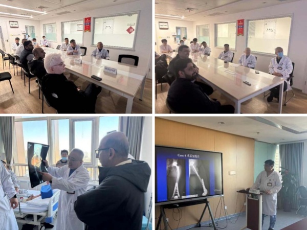 学术交流环节,巴基斯坦专家分享了该国的诊疗特色,李伟主任团队展示了科室智能化前沿进展及探索实例,王先泉主任医师分享了疑难病例处理策略。在交流中,巴基斯坦专家对我院骨关节科的专业水平给予高度评价,并表示此次交流为双方未来在开展关节外科的深入协作奠定了坚实基础。