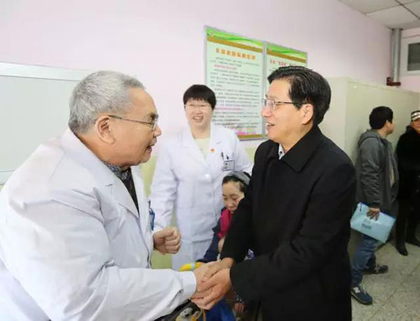 孙继业副省长随后来到儿科门诊,详细了解了我院儿科的发展历史,仔细询问了患儿就诊和收治。在儿科门诊,亲切看望了88岁高龄仍坚持看专家门诊的马沛然老主任。