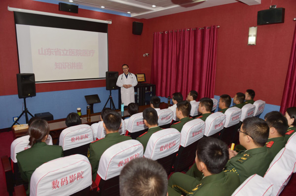 义诊结束后,专家们又将大家组织到一起,为大家讲述平时在执行急救任务时需要注意的问题,包括心肺复苏的注意事项,外伤患者的转运手法等等,战士们连连称赞,受益匪浅。